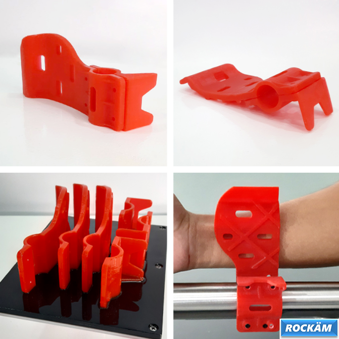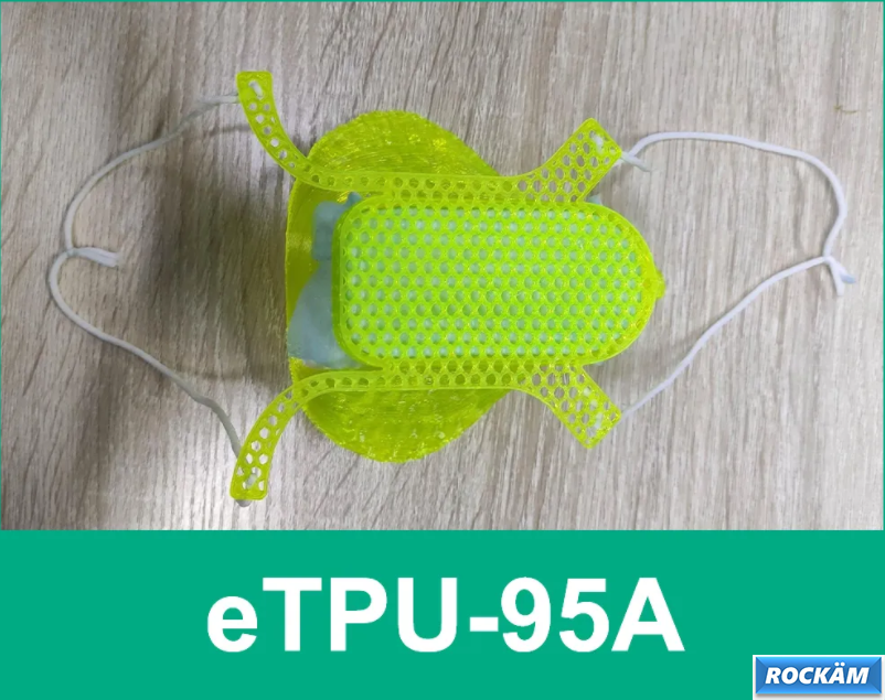 与【TPU-95A】原材料相同制造而成,线材具有高机械强度,能使计样件更加轻量化,基本满足了口罩佩戴过程中的强度及弯曲程度要求。能很柔软地贴合头部表面,不产生勒痕。